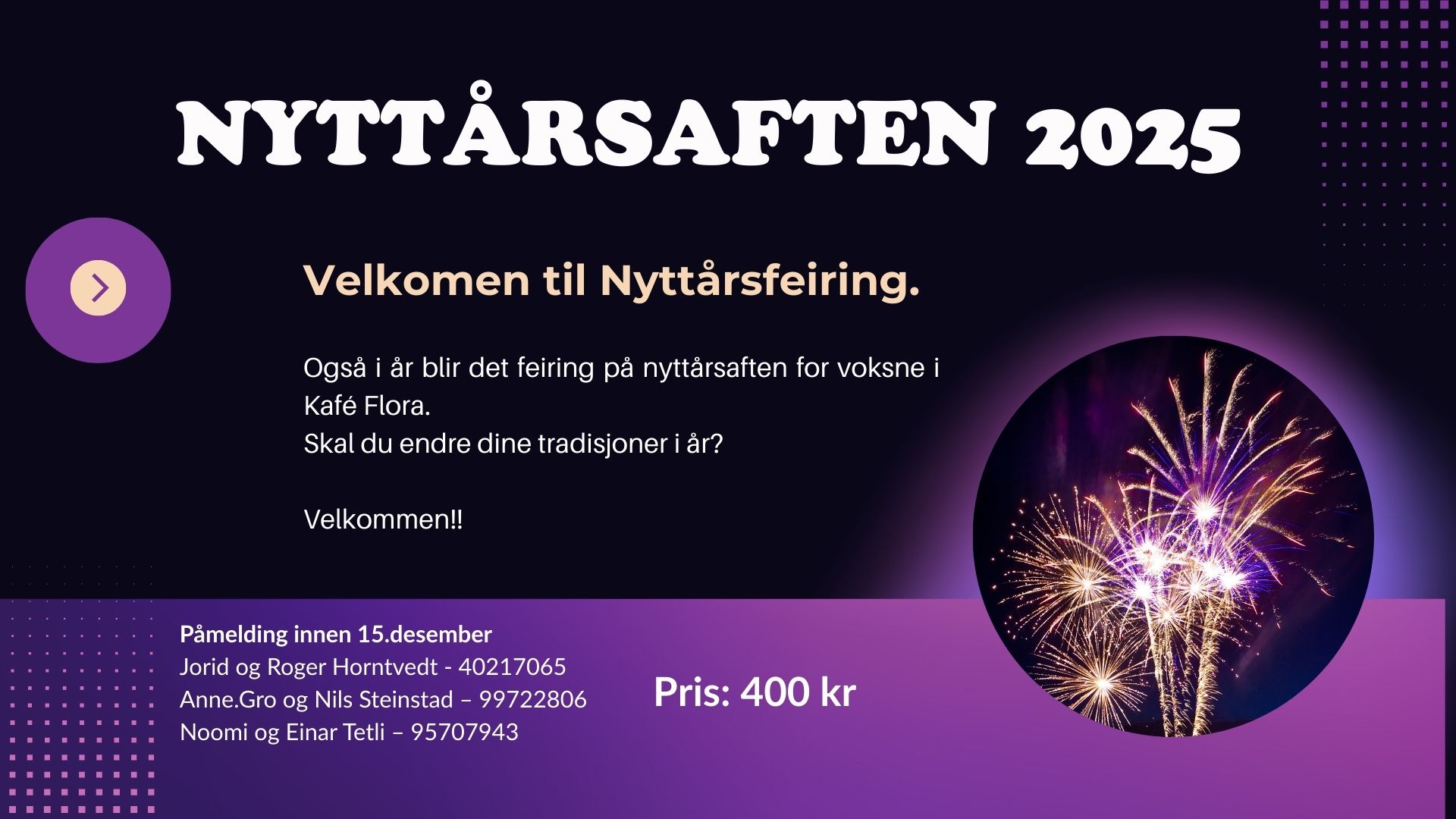 Også i år blir det feiring på nyttårsaften for voksne i Kafé Flora.